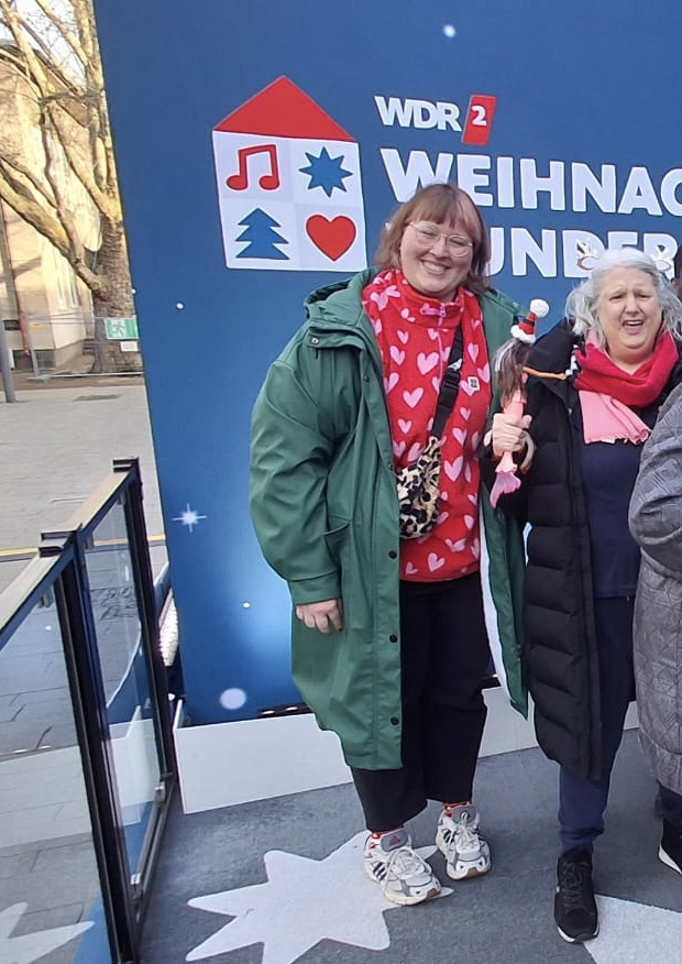 Gemeinsam mit einer Gruppe aus dem Wohnhaus Herrenweg und der WG Rektoratsstr. 33 der Lebenshilfe Krefeld e.V. unternahmen wir einen besonderen Ausflug zum WDR 2 Weihnachtswunder in Essen. Mitarbeiter, Bewohner und Angehörige hatten im Vorfeld für Kinder in Not und für die Tafel NRW gespendet. Vor Ort durften wir die Spende von 340 Euro verpackt in einem selbst gestalteten Umschlag in die Spendenbox werfen. Ein sehr bewegender Moment für alle Bewohner und Betreuer.