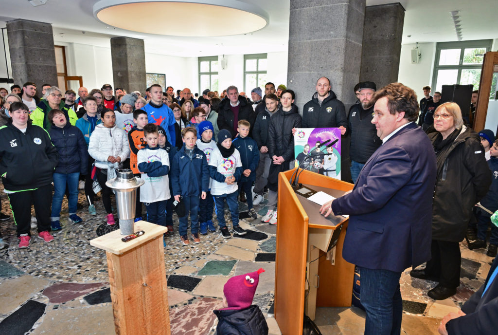 – Markus Schön sprach, er ist ja auch Sportdezernent, er verwies auch auf das letzte Jahr, darauf, dass Krefeld ‚Host Town‘ war und er auch in Berlin dabei war und sogar eine Siegerehrung vornehmen durfte. Das hat ihn sehr berührt. Und er meinte, dass Krefeld zu Recht, aufgrund der großen Erfolge der Krefelder Sportler, der Startpunkt für den diesjährigen Fackellauf war.